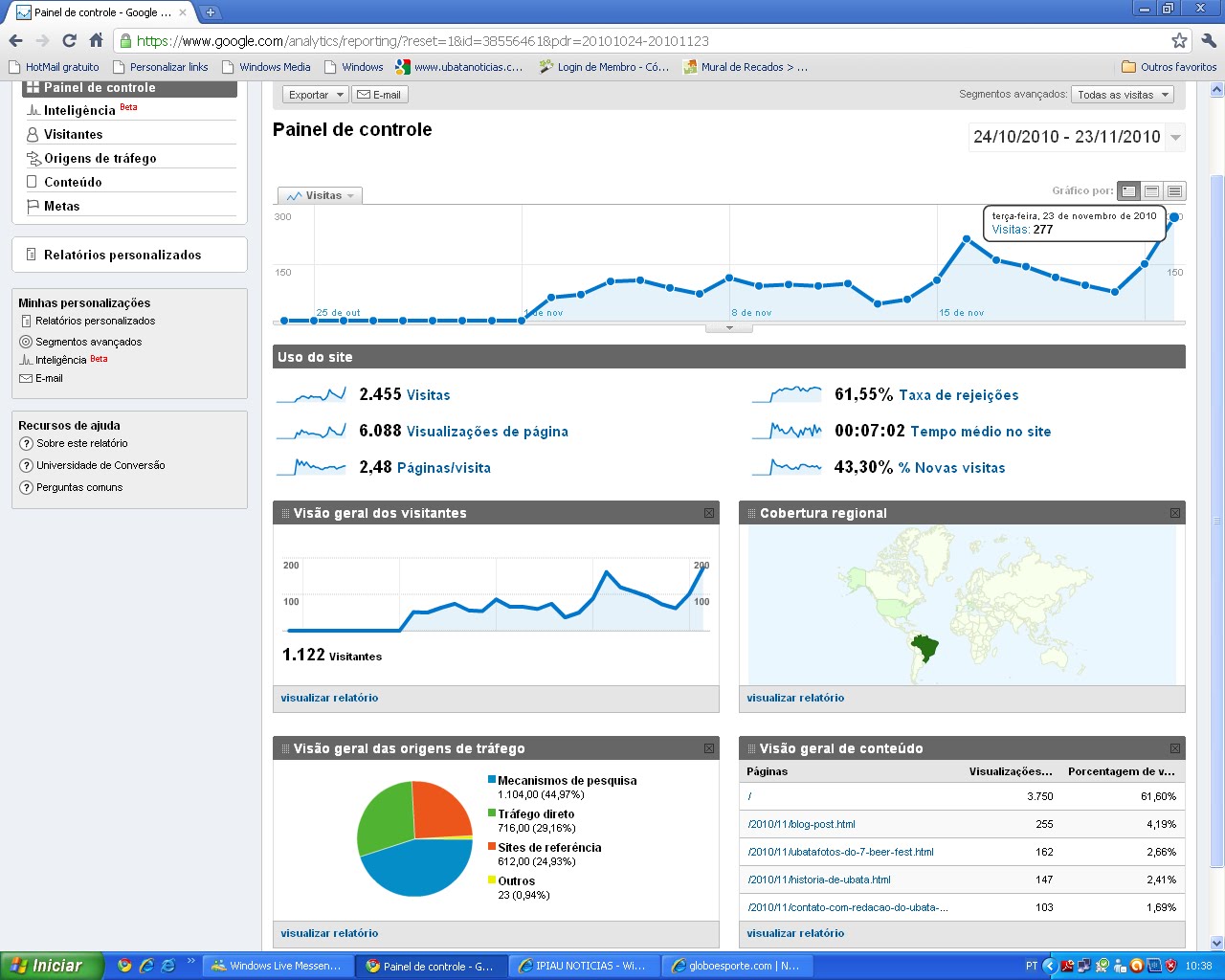 Em pouco mais de 20 dias de funcionamento, o Portal Ubatã Notícias já é sinônimo de informação e credibilidade. Instalamos no site um programa chamado Analycts, que registra a quantidade de acessos diários, tempo de permanência e local de onde o portal é acessado.
